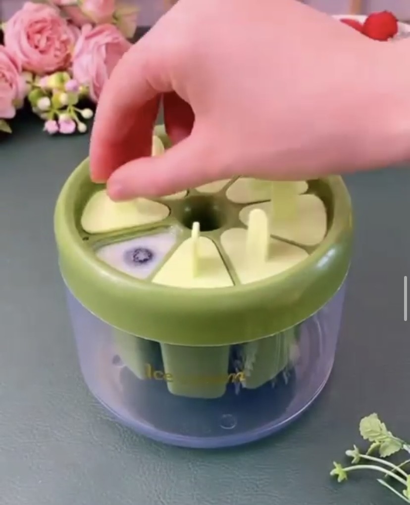 Ice cream popsicle mold with plastic sticks